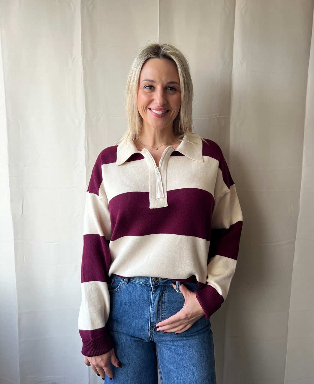 Pull rayé hippie orné de larges rayures horizontales qui capturent l'essence même du style bohème. Sa coupe décontractée et sa confection confortable en font une pièce idéale à superposer pour un look casual et sans effort. Parfait pour celles et ceux qui recherchent un charme rétro authentique, une allure moderne et intemporelle.