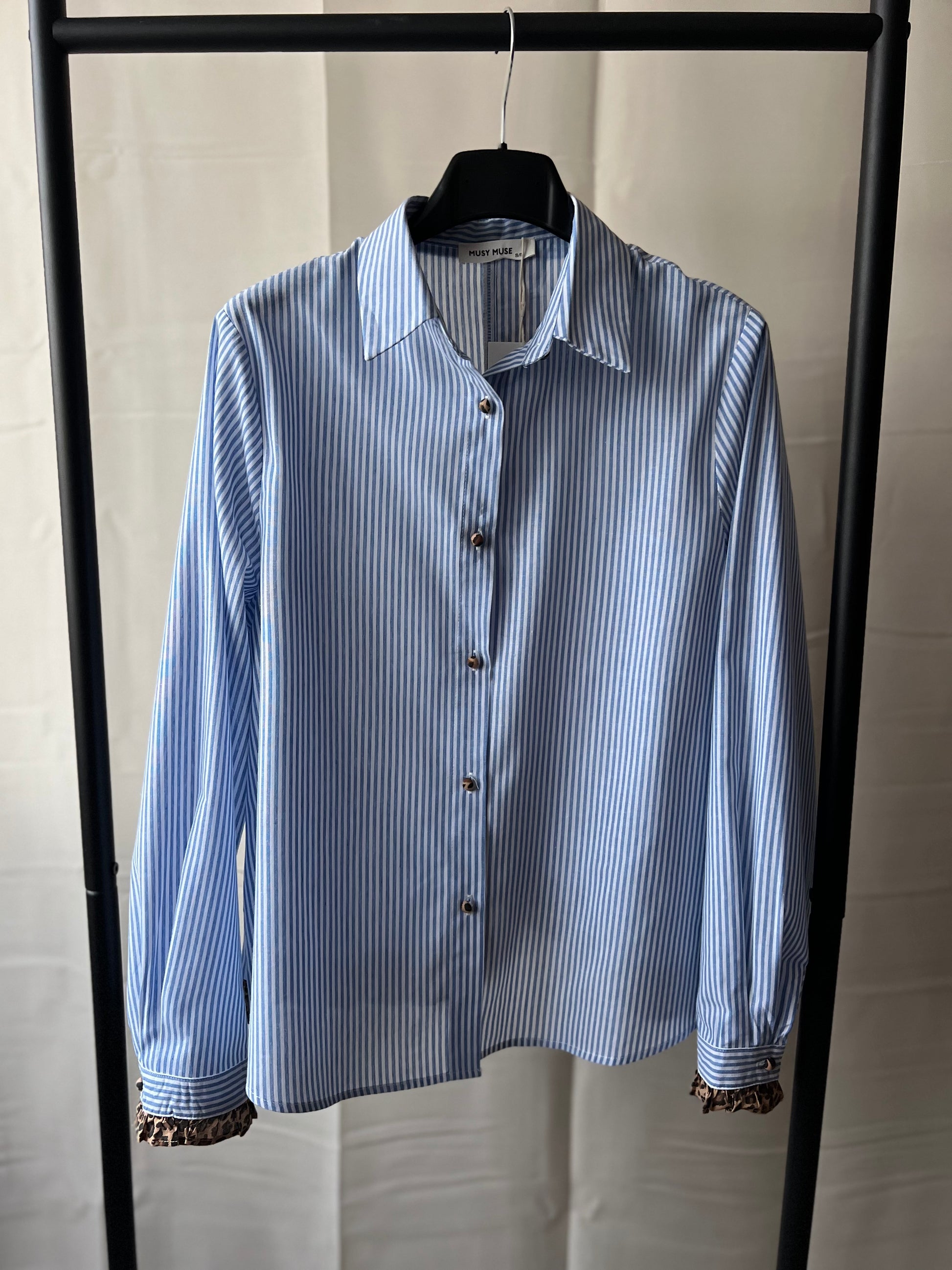 Le chemisier à volants léopard allie un imprimé animal audacieux à des détails raffinés dans une palette de bleus saisissante. Les volants apportent texture et mouvement, sublimant la pièce au-delà d'un simple imprimé. Ce chemisier tendance se porte aussi bien seul qu'en superposition sous un manteau neutre, offrant une grande polyvalence à celles qui souhaitent ajouter une touche d'originalité et de personnalité à leur garde-robe.