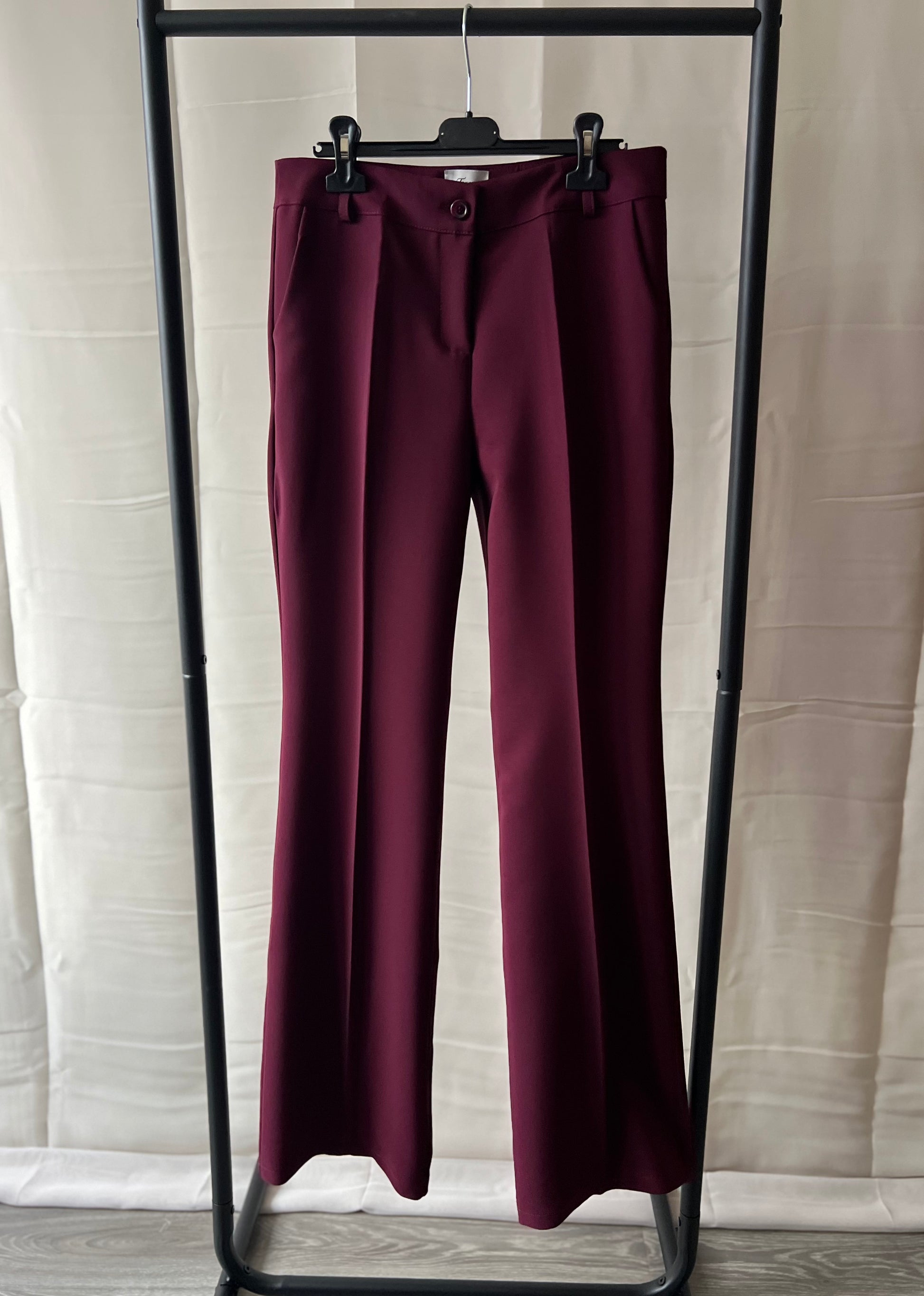 Verfijn je silhouet met deze bordeauxrode flared broek, een onmisbaar kledingstuk dat vintage-geïnspireerd design combineert met eigentijdse verfijning. De vloeiende pijpen creëren een verlengend effect, terwijl de diepe wijnrode tint veelzijdige stylingmogelijkheden biedt, ongeacht het seizoen. Perfect voor het creëren van zowel verfijnde als modieuze looks met minimale inspanning.
