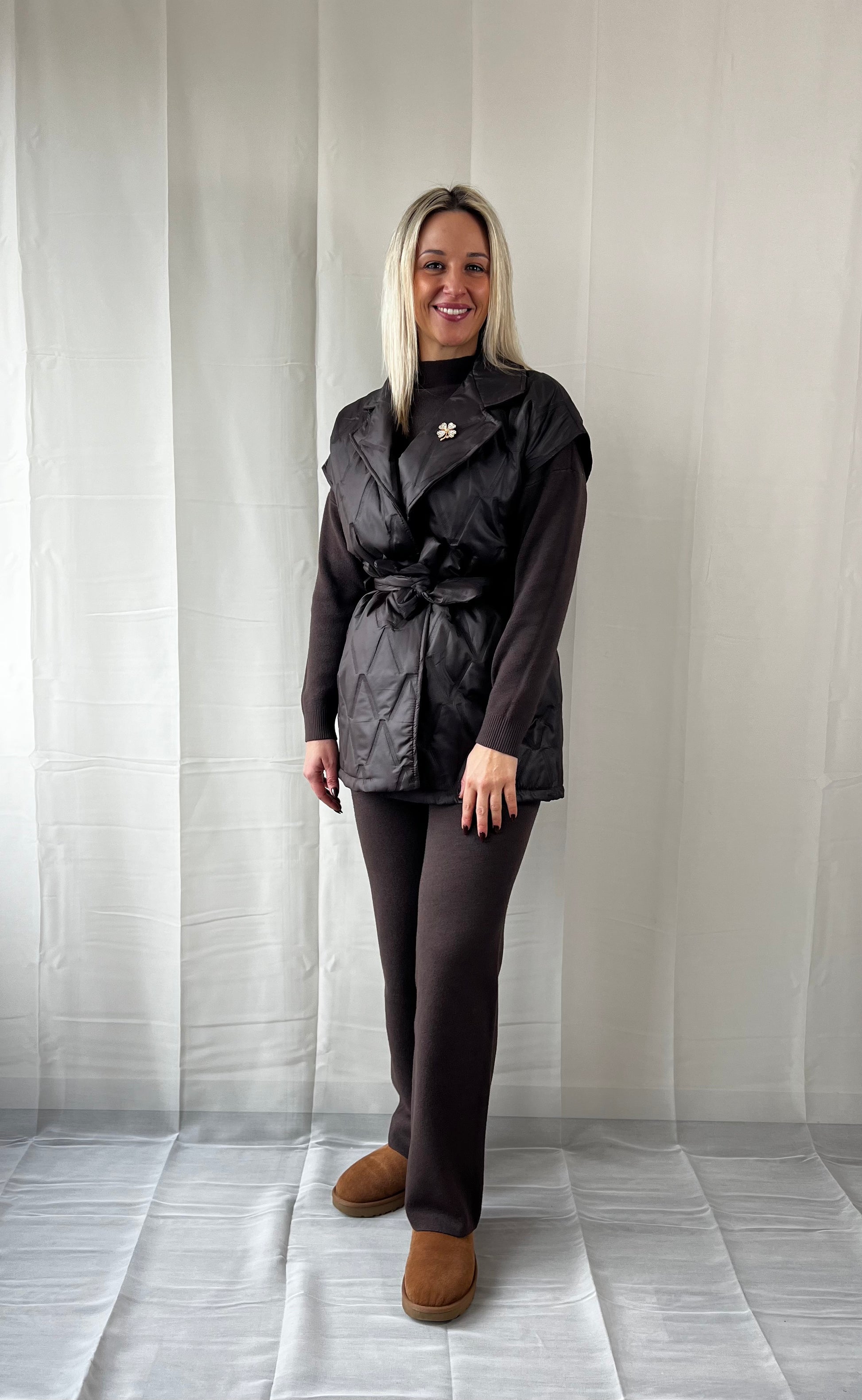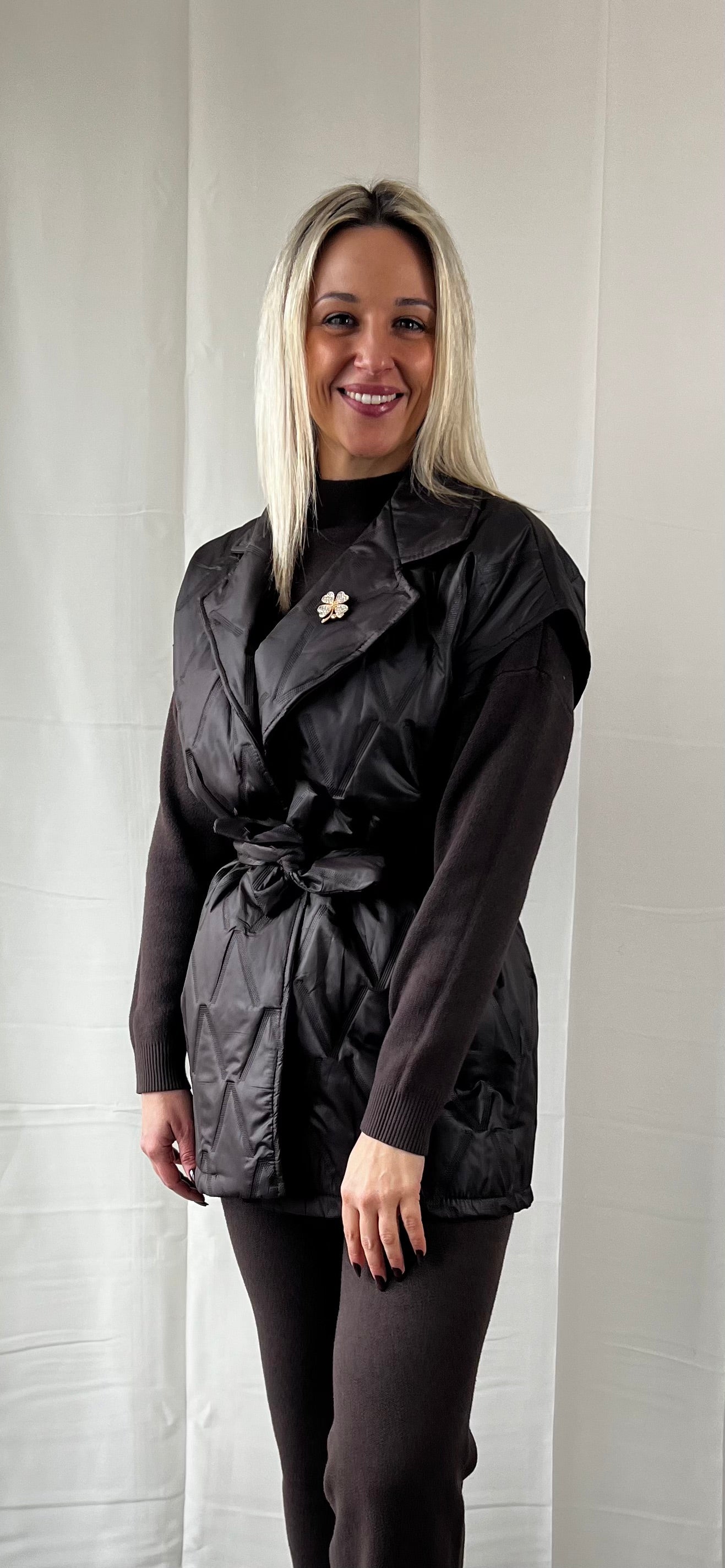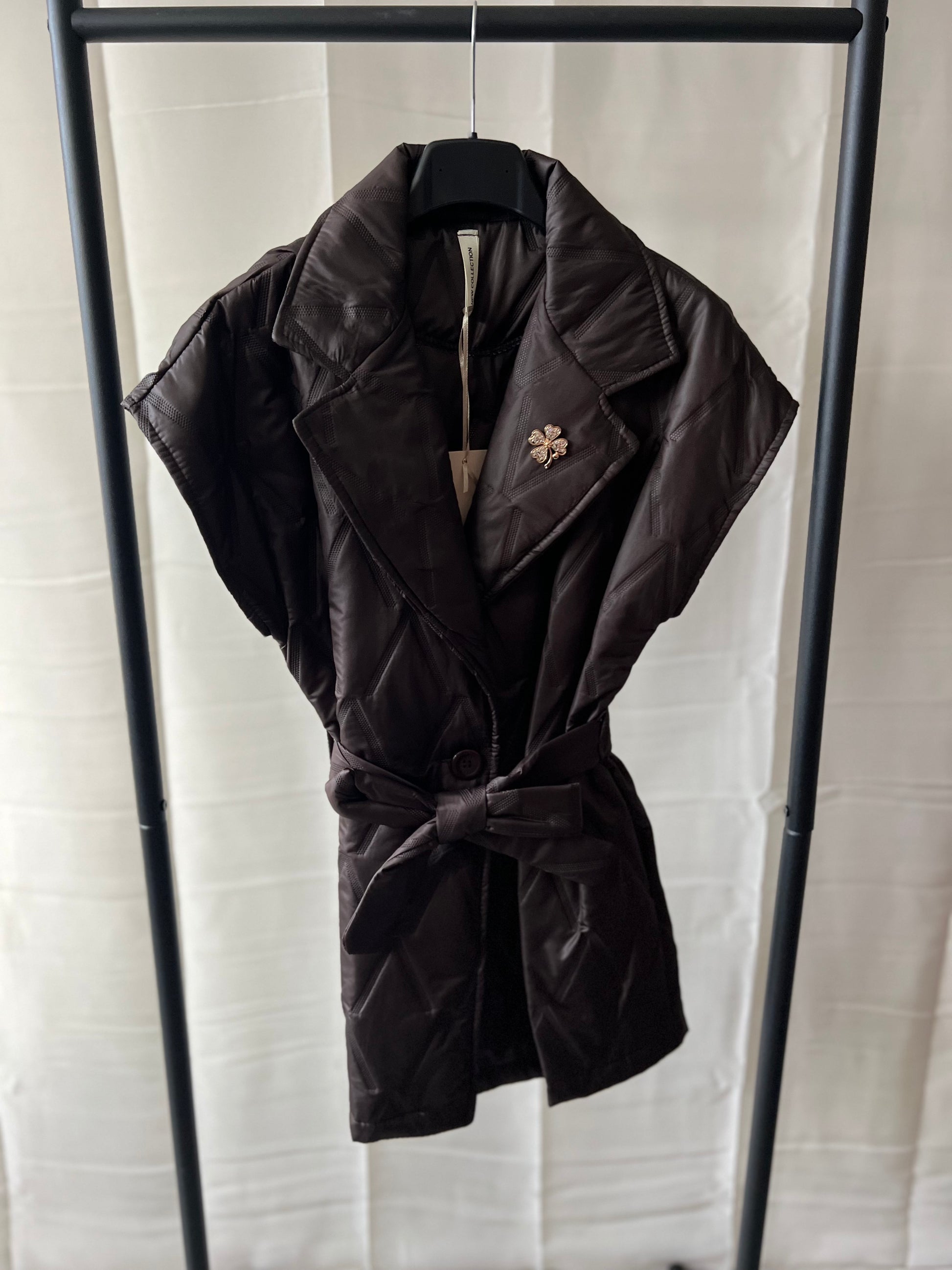 Clover Beige presenteert een gestroomlijnd mouwloos jasje in warme beige tinten, ontworpen voor veelzijdige laagjes, seizoen na seizoen. Het gestructureerde silhouet zorgt voor een verfijnde definitie, terwijl het armloze ontwerp de stylingmogelijkheden over verschillende basislagen maximaliseert. Dit verfijnde item gaat moeiteloos over van casual naar professionele omgevingen en dient als een belangrijke tussenlaag voor het samenstellen van een verfijnde, aanpasbare garderobe.
