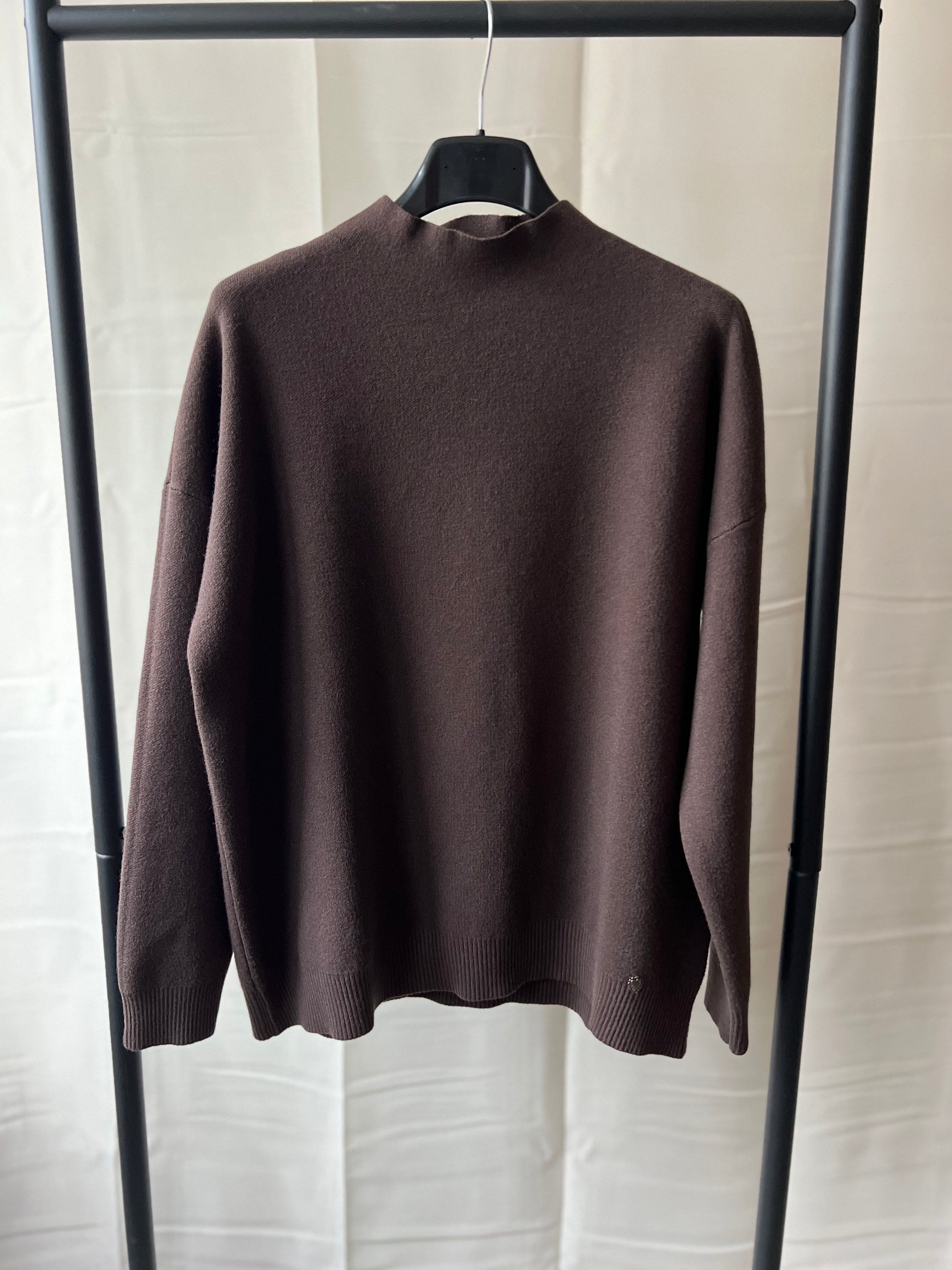 Ingetogen bruine trui, ontworpen voor veelzijdig dagelijks gebruik. De neutrale tint combineert moeiteloos met elk basisstuk, terwijl de verfijnde constructie duurzaamheid en comfort garandeert, zelfs bij veelvuldig dragen. Een basisstuk dat hoogwaardige basics en een tijdloze stijl symboliseert voor de veeleisende stylist.