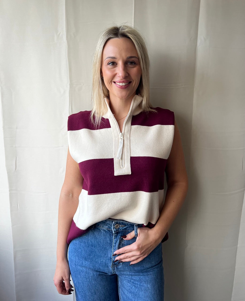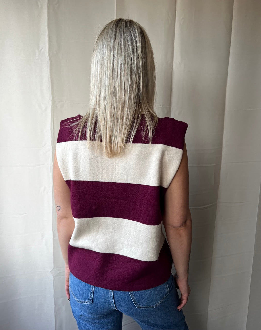 Hippe gestreepte pull met opvallende horizontale strepen die de essentie van de bohemian stijl vangen. De relaxte pasvorm en comfortabele constructie maken het een ideale laagjeslook voor een moeiteloze, relaxte look. Perfect voor wie op zoek is naar authentieke retro charme met moderne draagbaarheid en tijdloze aantrekkingskracht.
